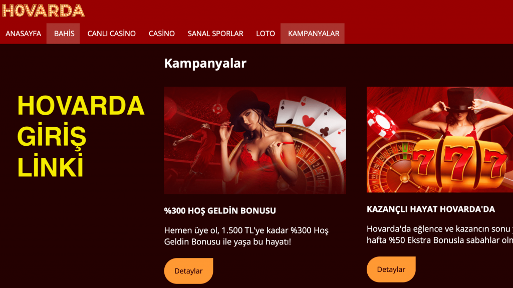 Hovarda bahis sitesi faaliyete geçtiği ilk dönemden itibaren ciddi bir üye akımı yaşamaktadır. Bunun başlıca nedeni ise site yönetiminin sunmuş olduğu ayrıcalıklı içeriklerden kaynaklıdır. Sitede çeşitli oyun kategorilerinin yanı sıra yüksek oranlarda bahis imkanı da tanınmaktadır. Aynı zamanda kazandıran bonus içeriklerinden faydalanarak da kısa sürede ciddi kazançlar elde edebilirsiniz.