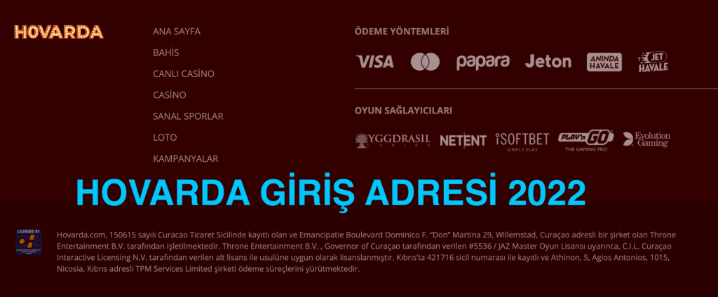 Bahis bürosunda her zaman eğlenmeye ve kazanmaya devam edebilirsiniz. Üstelik site yönetimi Curaçao hükümetinden almış olduğu lisansı ile hizmet vermektedir. Bu bağlamda Hovarda bahis sitesi tamamen resmi ve güvenilir bir şekilde hizmetlerini sürdürmektedir. Sitede hiçbir konuda problemle karşılaşmanız mümkün değildir. Ödeme işlemlerinizi de sorunsuz bir şekilde gerçekleştirebilmeniz mümkündür.